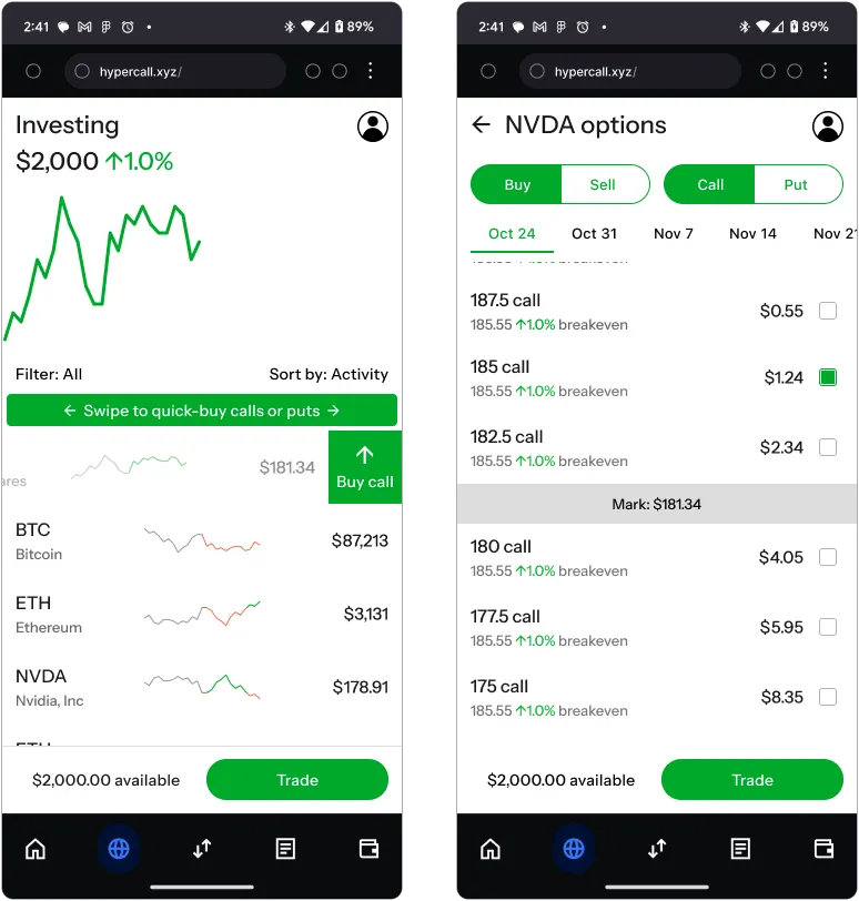 Instead of ignoring these advancements, Hypercall has built a best in class mobile trading experience that takes advantage of users muscle memory and familiarity with the interface.